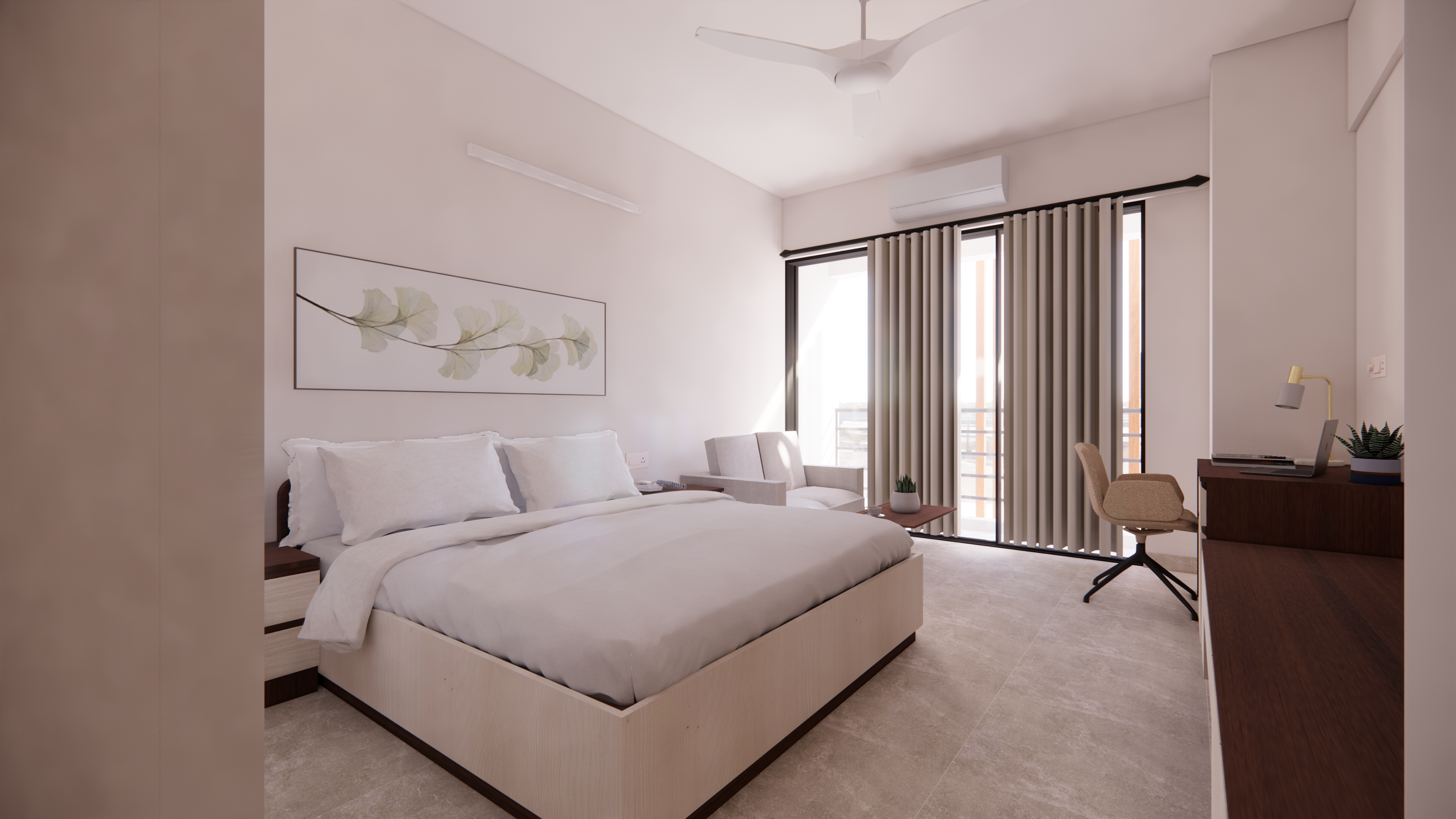 The building is oriented towards north and south so as to reduce the solar ingress from the harsh east and west sun. In continuation, ample focus is placed on the rooms facing north and south as the views extend towards a large green open space on those sides. One will notice that this method works very well as there is an existing building towards the East and an upcoming building towards the West.