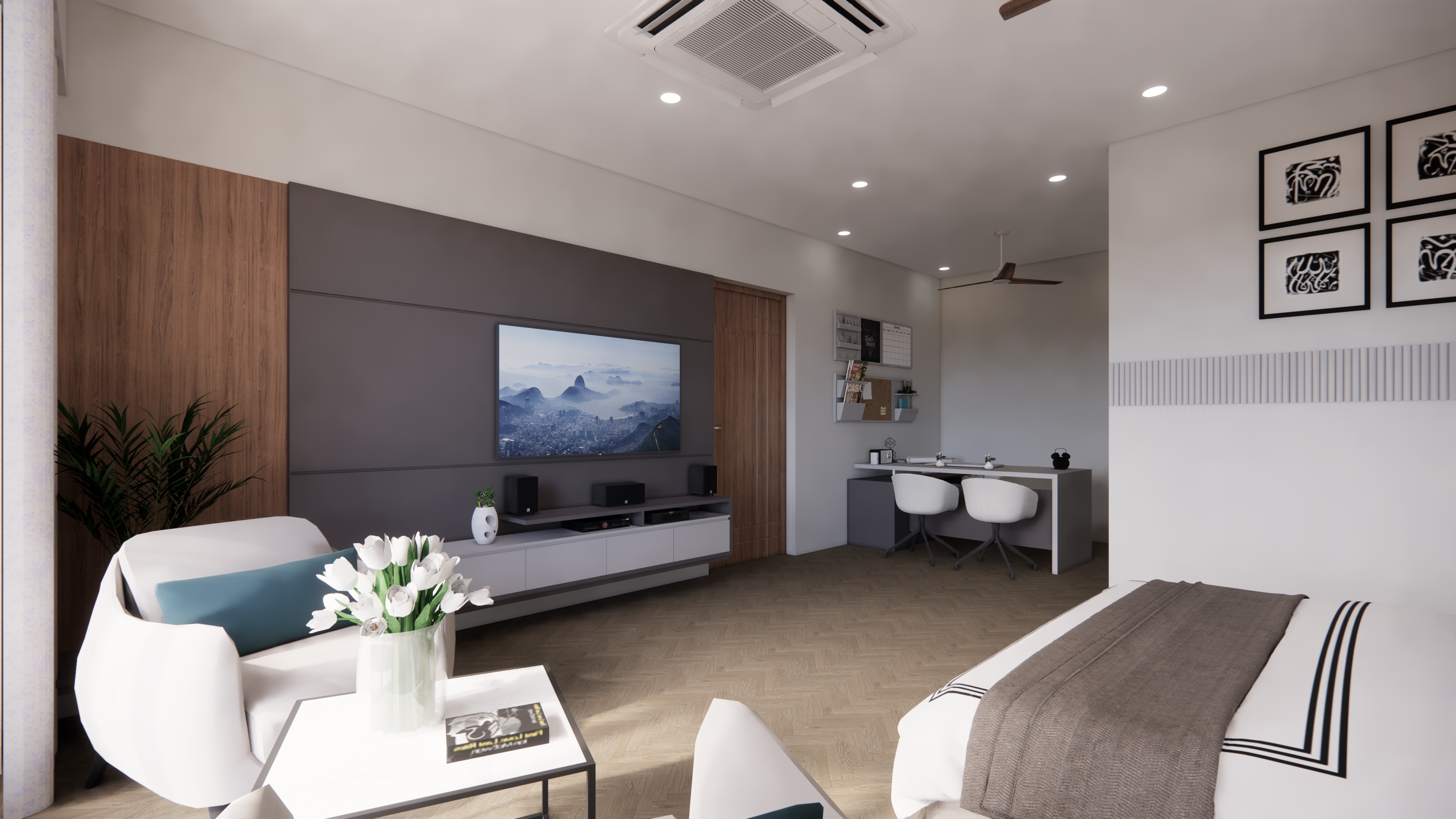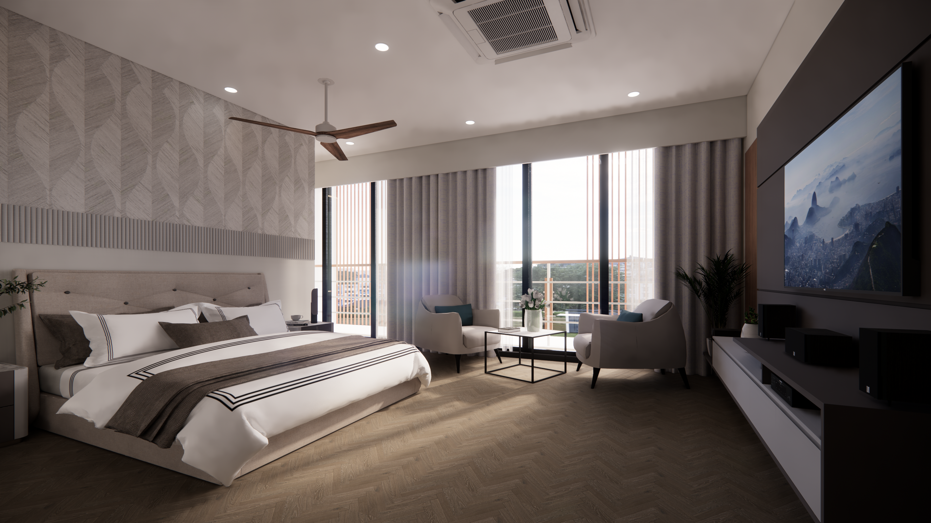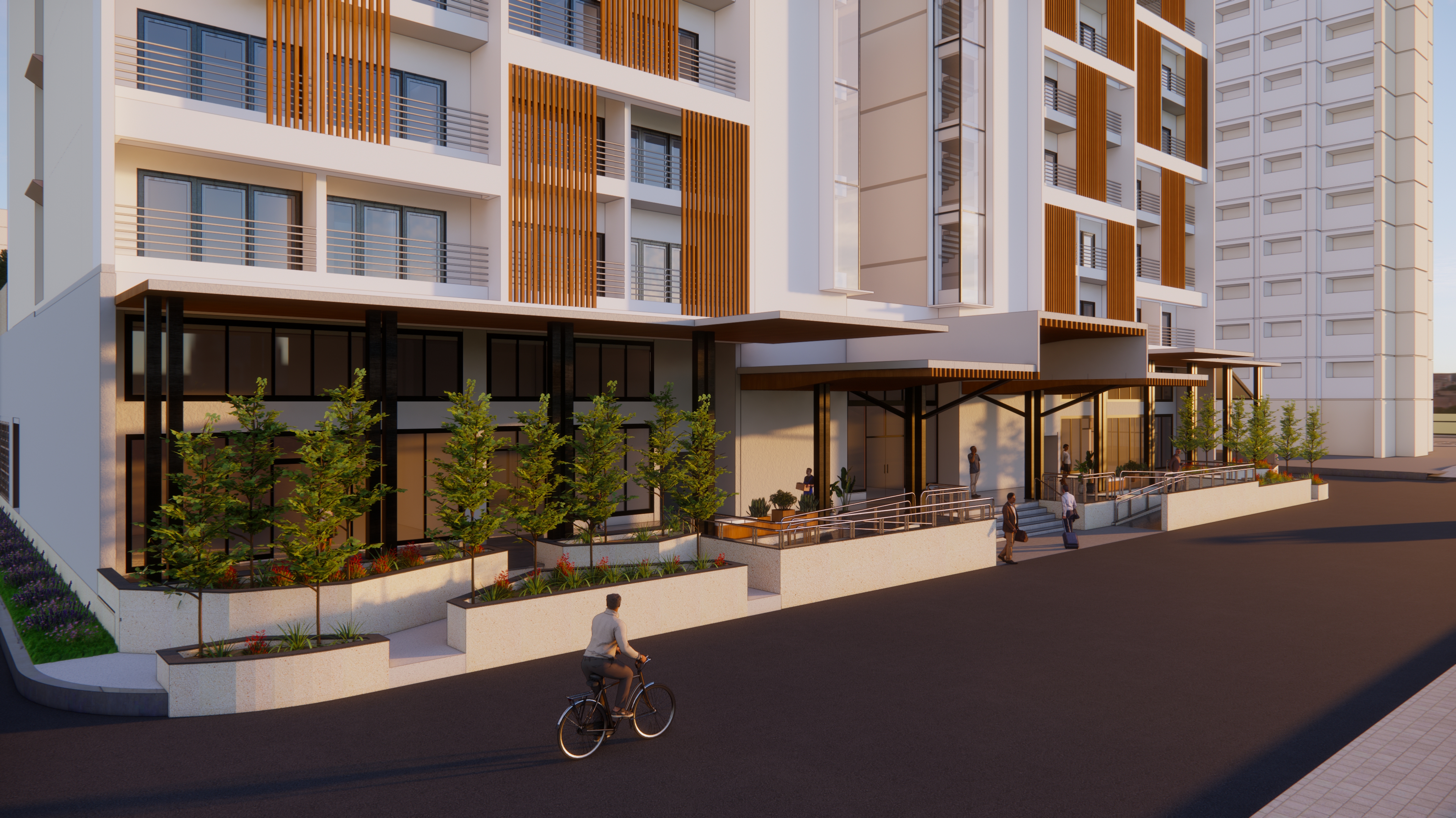 The L&T Hostel building design places major attention to passive sustainable techniques of climate control. The concept also focuses on the views from the building. In addition, the functioning of the hostel is conceived as a 3-star hotel with the required amenities of a business center, restaurant, grocery, gym and so on.