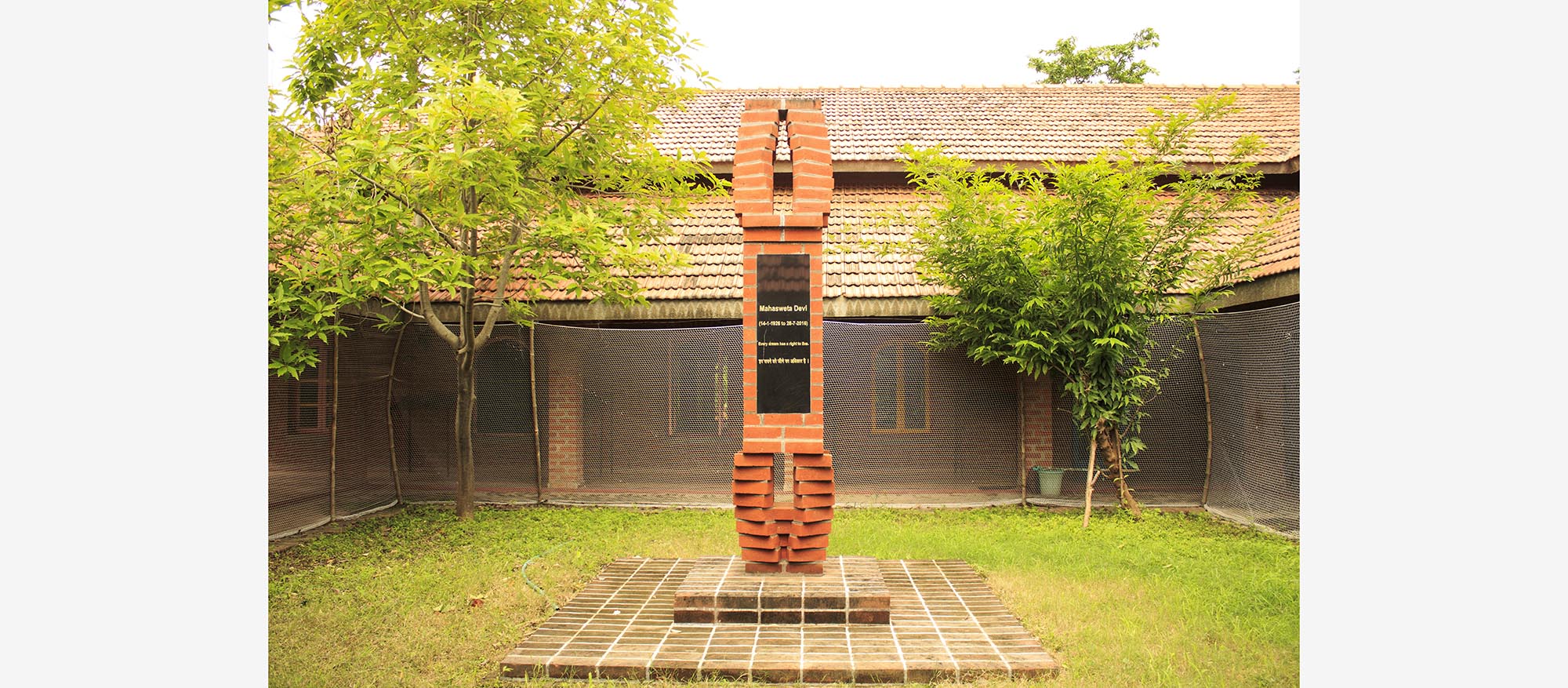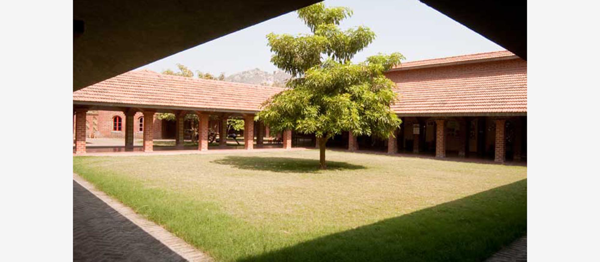 The National Tribal Academy is a complex of buildings which responds to the site; it revolves around an age old Mahua tree.