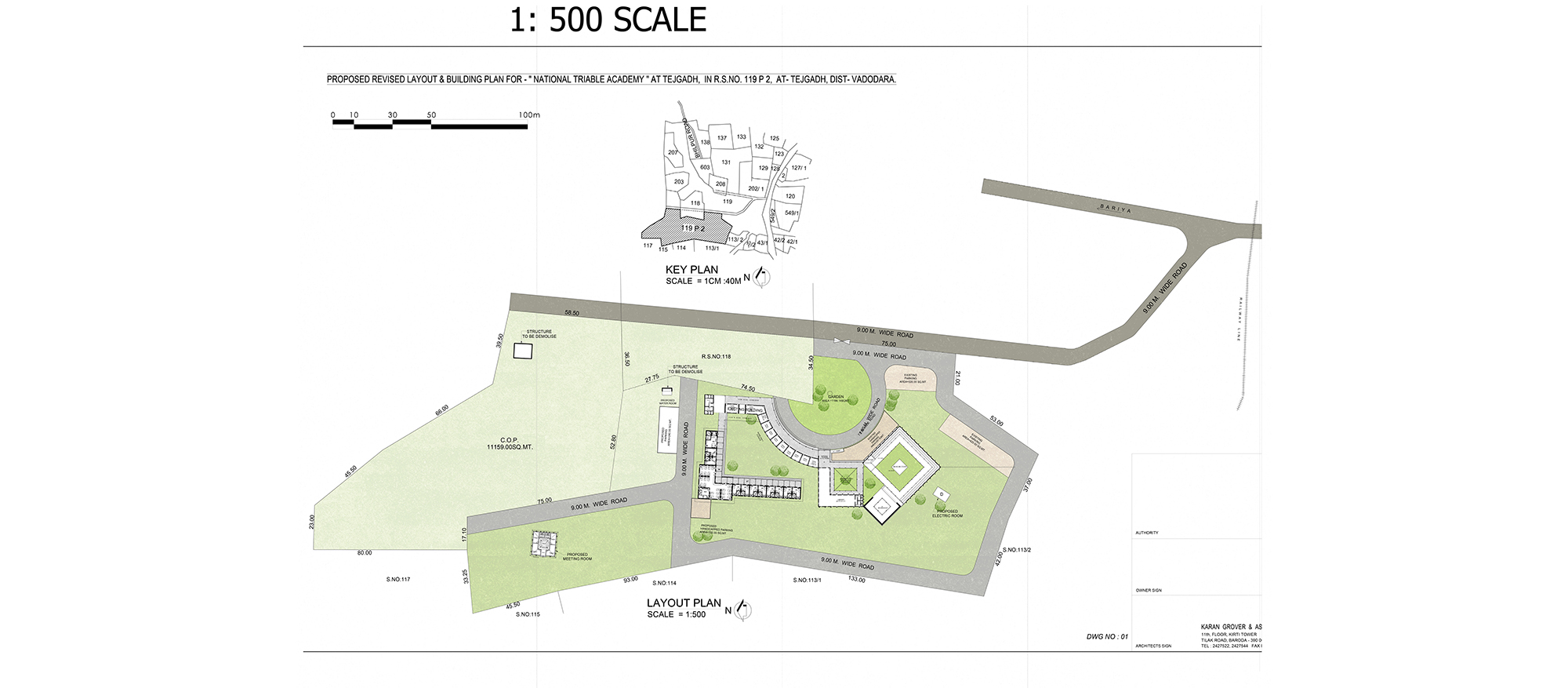 The projects incorporates a library, museum, residential and administration block all axially located around courts and tree clusters for prospering better social interaction and positive growth of the culturally rich tribes.